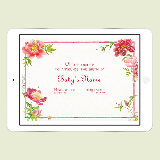 Peonies Digital Birth Announcement