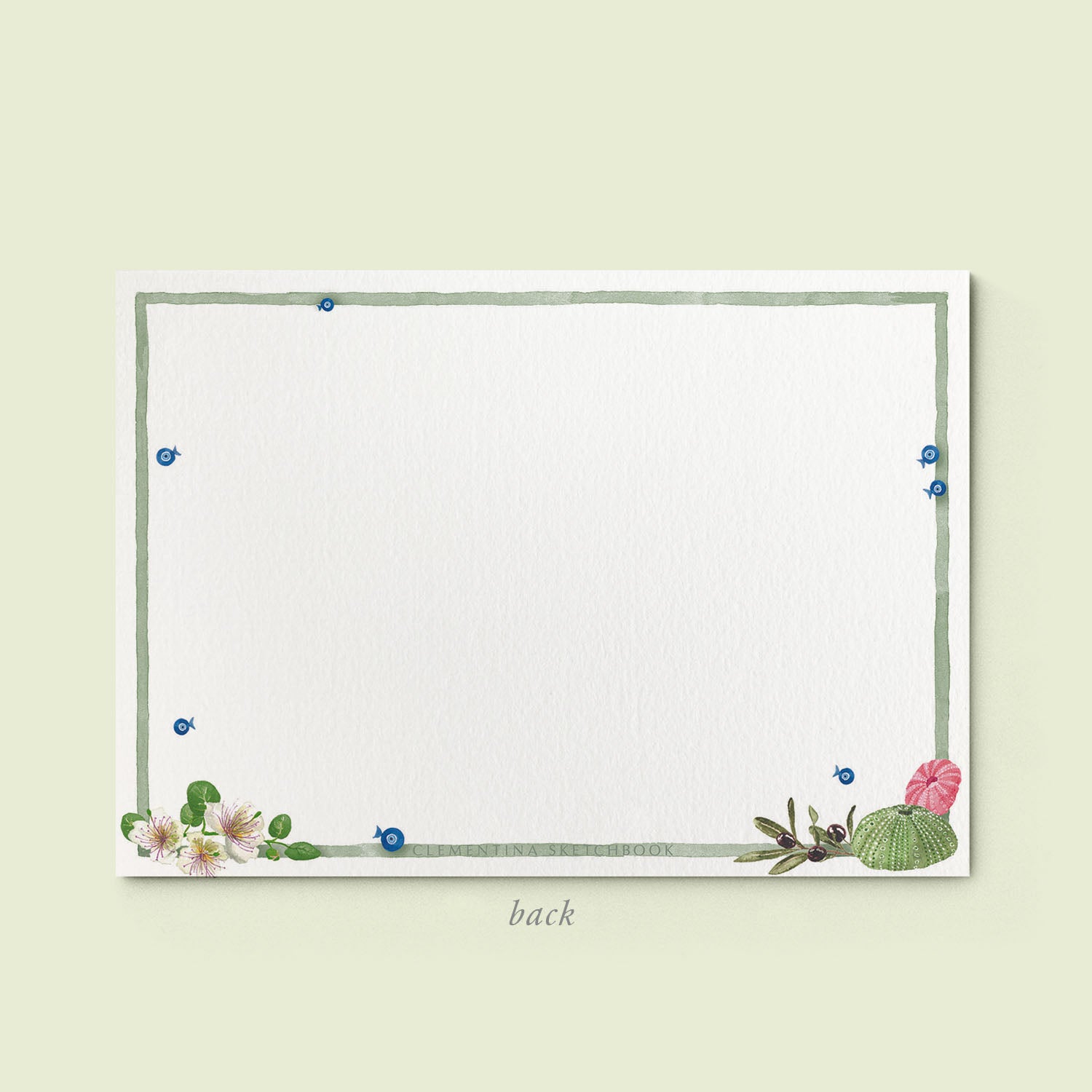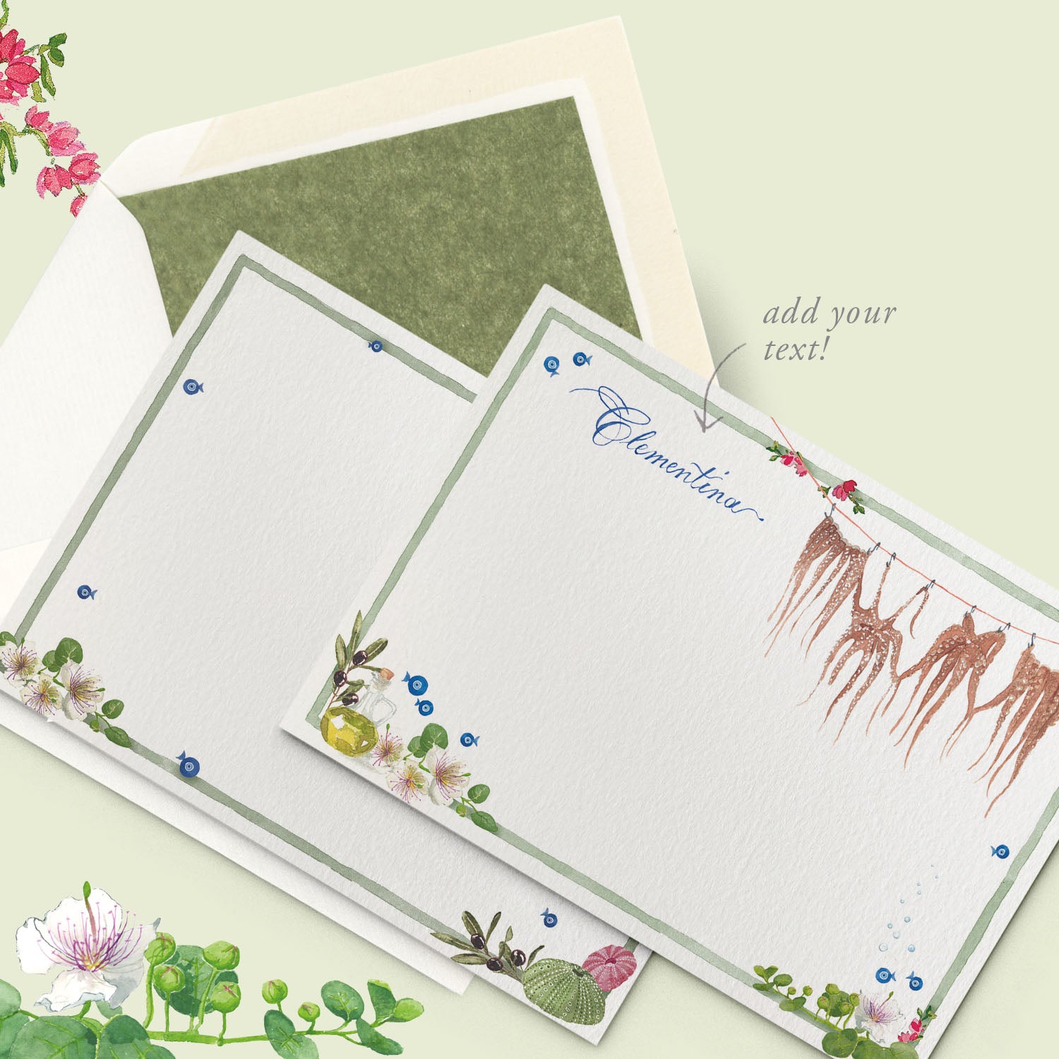 Let’s fly to Greece! A card that evokes Greek summer days, filled with alluring Mediterranean perfumes. This is an elegant way to thank your friends for those warm summer dinners and boat days.