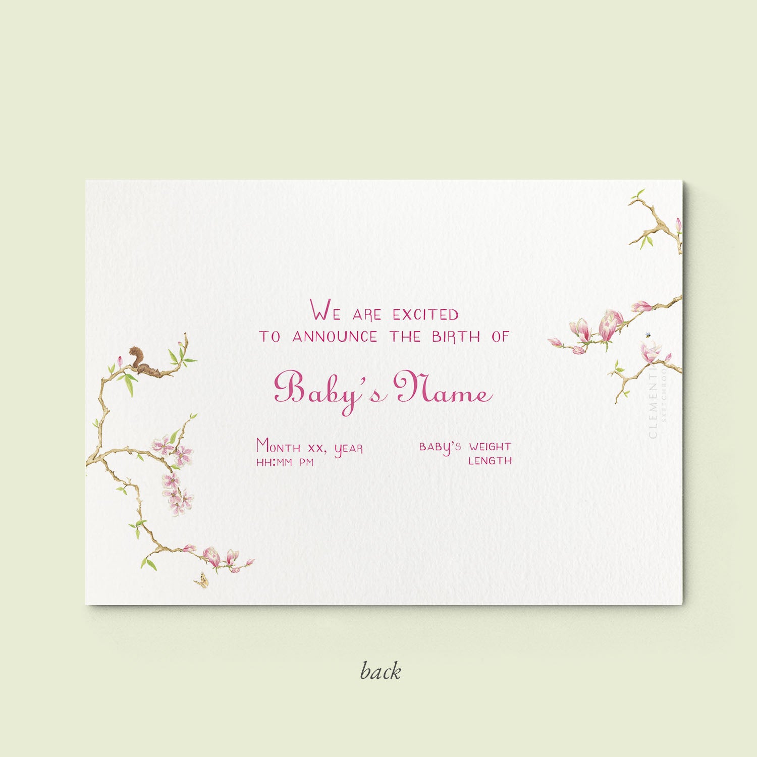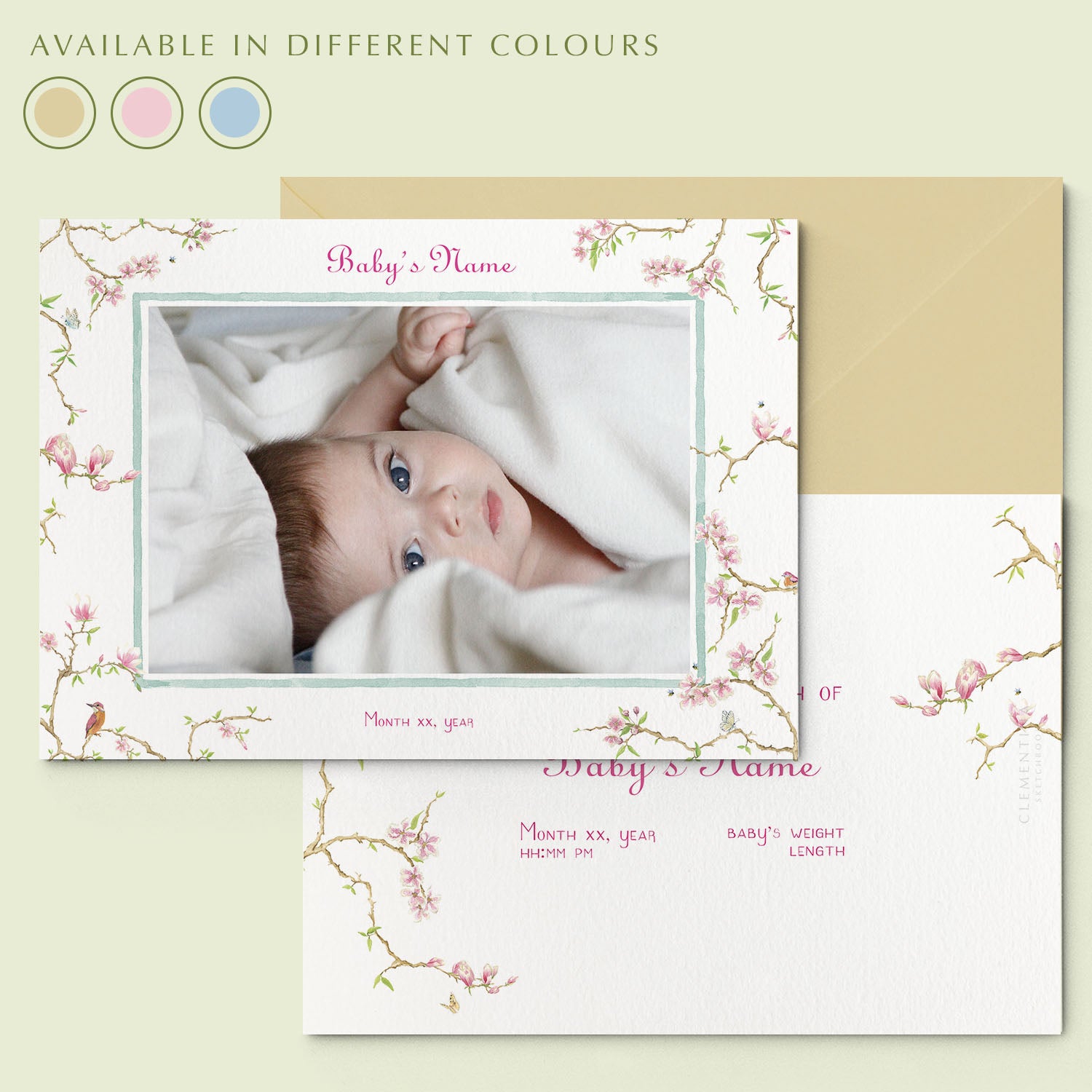 - Personalise with your announcement text and birth info