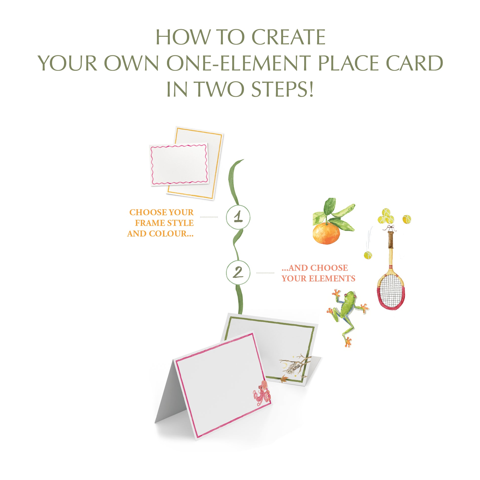 Choose one element that says it all, add your frame, and create the most fabulous place cards for your special events!