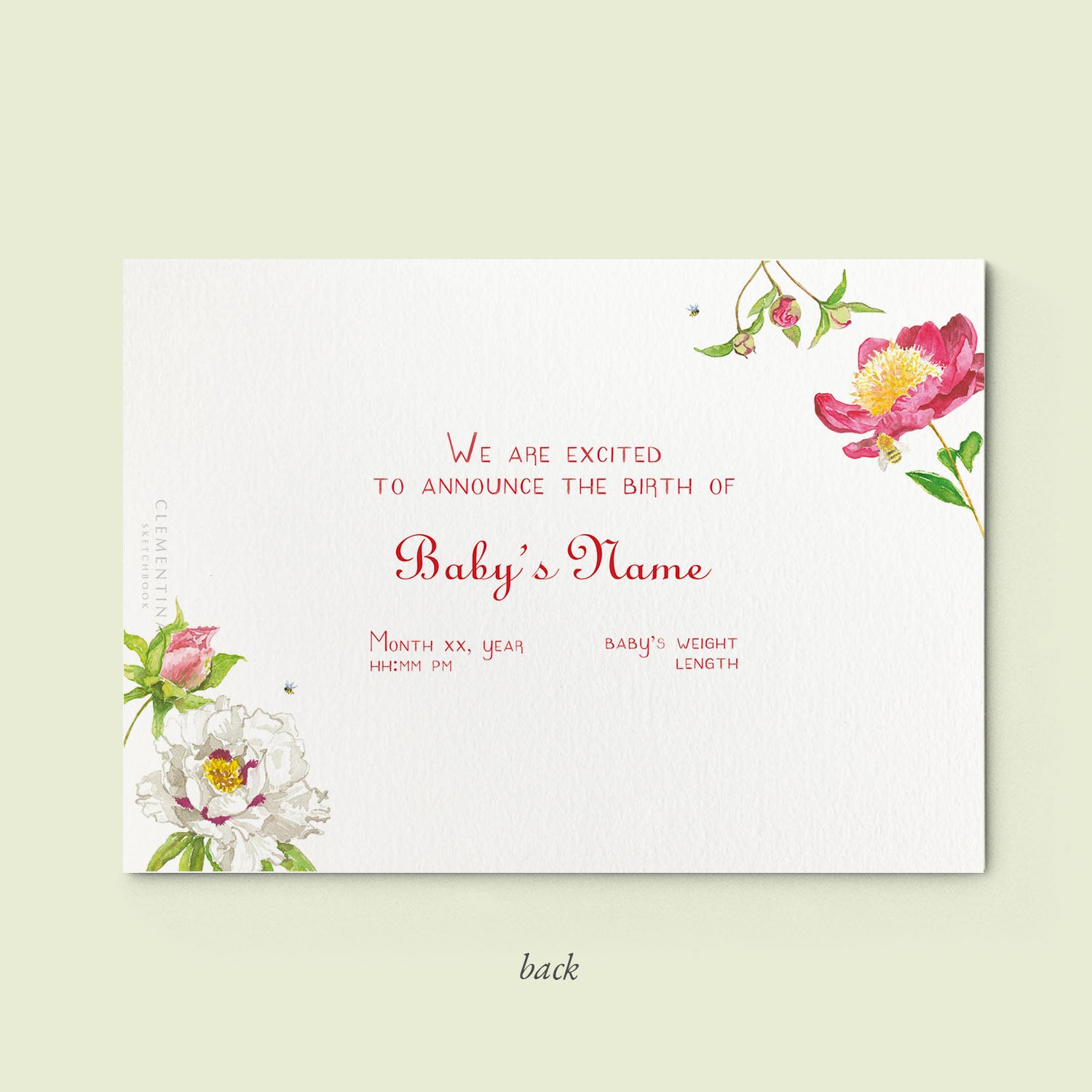 There’s no lovelier way to celebrate your new bundle of love with these beautiful blossoms. Your blooming news will travel far & wide with these stunning birth announcements full of pretty peonies bursting with colours!
